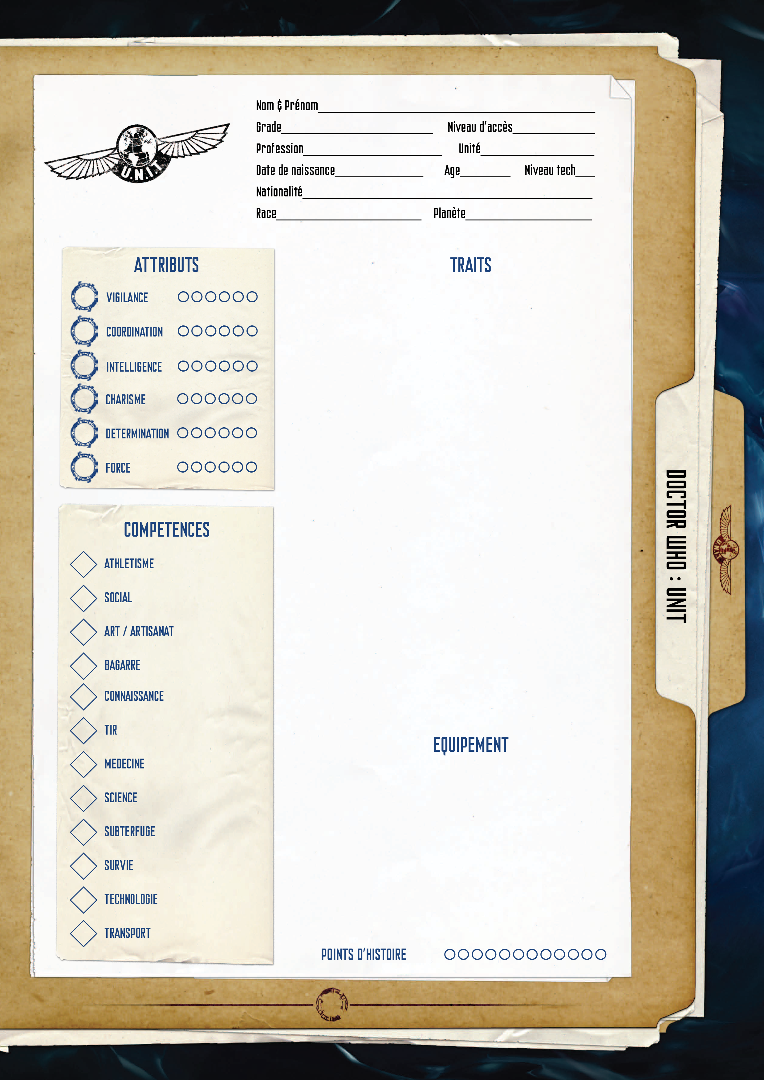 Les attributs et compétences sont répartis en fonction d’un système à points. Si vous souhaitez voir à quoi ressemble la fiche, cliquez sur l'image.
