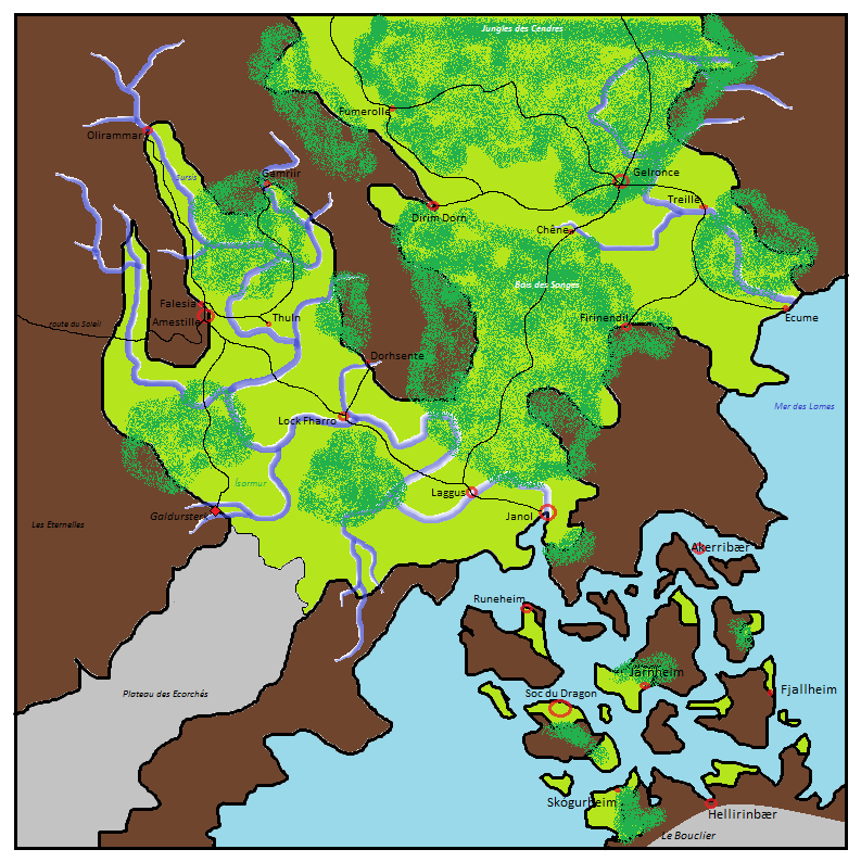 - Runeheim, une ville portuaire à l'entrée des Marches de Cristal.