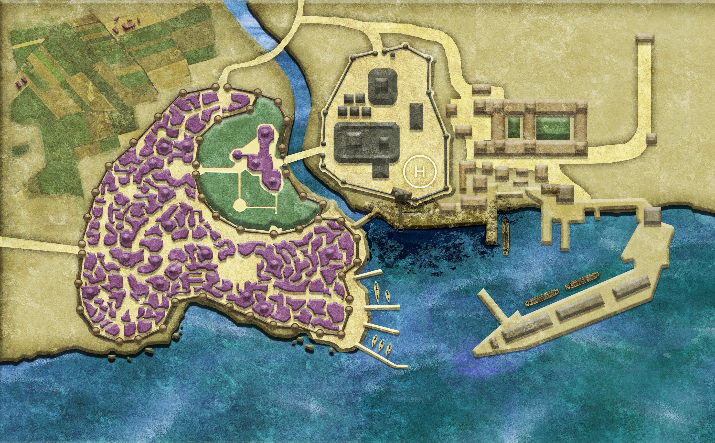 La ville de SILNIBERANA se trouve à l’embouchure du fleuve Toyol, sur les rives de l'océan Abyssal. Le côté nord de la ville, est une longue plaine fertile, parsemé de cultures et de fermes. La ville en elle même se divise en 2 parties très distinctes qui se font face de part et d'autre de l'estuaire. Sur la rive droite, se dresse la vieille ville, dominé par le palais du gouverneur. Alors que sur la rive gauche, la famille Vasquez, a dressé son usine d'armement, bordée par un port de transit pour les marchandises qui en sortent quotidiennement. Malgré la présence proche des infrastructures industrielles, et les nuages noires qui s'échappent des usines et viennent parfois gâcher l'atmosphère de la cité, en fonction de la direction du vent, Silnibérana a tout d'une ville mélodienne modèle, avec ses fresques et ses peintures omniprésentes, qui tentent de dissimuler l'insinueuse présence des technologies humaines, écrans publicitaires et autres antennes relais pour arpège. Il est à noté que les locaux ne voient d'ailleurs pas d'un mauvais oeil, ce déploiement de modernité, puisque la ville se veux être une capitale de la mode, et que la représentativité que permet le réseau, lui donne un éclat particulier aux yeux des autres citadins. De plus, à l'est de l'usine se trouve une résidence ouvrière qui accueille les employés des Vasquez, ainsi qu'un grand centre commercial, où il est de mise de pouvoir présenter les collections locales, autant que des produit de l'ensemble du continent.